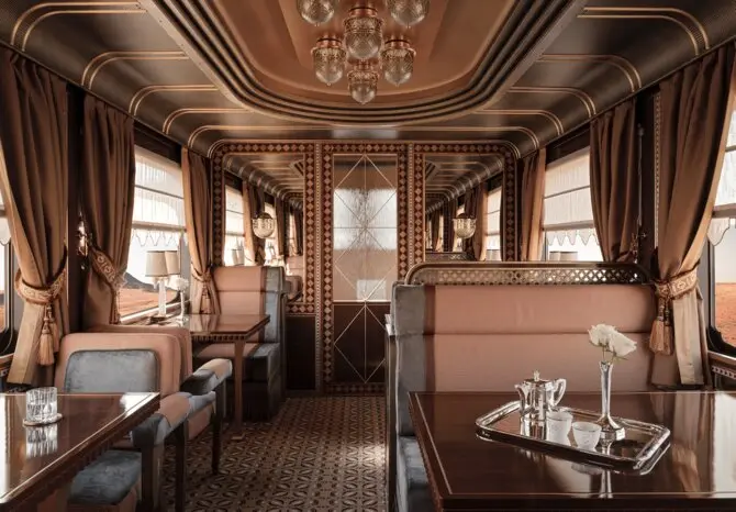 این قطار دارای ۳۱ سوئیت خصوصی و دو سوئیت ریاست جمهوری است که ظرفیت پذیرش حداکثر ۶۶ مهمان را فراهم می کند. طراحی داخلی آن از مناظر عربستان الهام گرفته و شامل رنگ های الهام بخش از بیابان، کنده کاری های چوبی غنی و نورپردازی شیشه ای مورانو ساخته شده که یادآور فانوس های سنتی شرقی است. مهمانان به دو واگن رستوران دسترسی دارند و بین غذای سنتی محلی و منوهای بین المللی با تأثیرات ایتالیایی میشلینی انتخاب می کنند. همچنین یک سالن مرکزی به نام «مجلس» فضای مناسبی برای اجتماع و استراحت فراهم می کند.